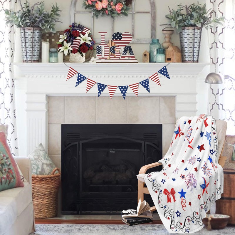 • Versatile Decor Element: Enhance your home decor with our 4th of July theme Pattern Throw Blanket, infusing a touch of sophistication into any room. Whether it's placed in your living room, bedroom, or used as a decorative, this blanket introduces an elegant and nature-inspired surrounding feeling.