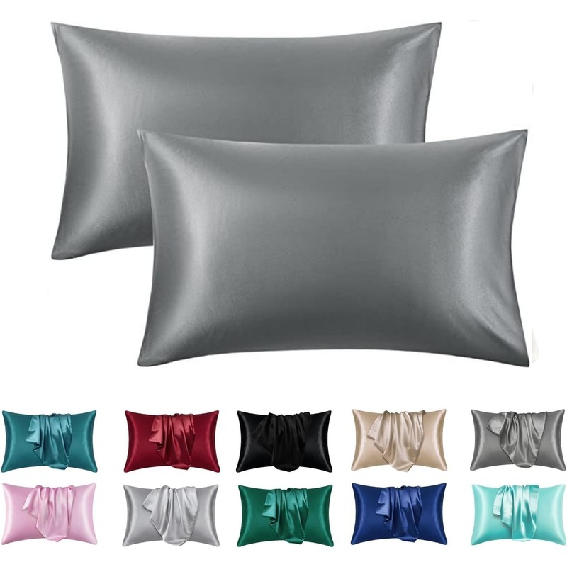 Luxury Satin Pillowcase with Zipper, Standard Size, Black (Silky Satin Pillow Case for Hair) (Grey, Standard(20by26inch))