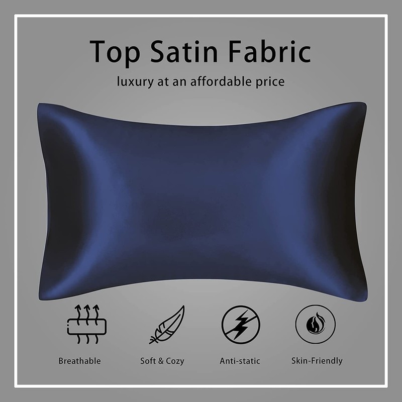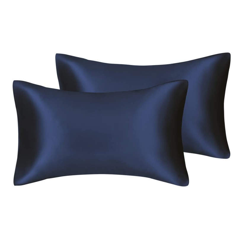 Luxury Silky Satin Pillowcases 2 Pack for Hair and Skin, Pillow Protector with Hidden Zipper Closure Cooling Pillow Cases (Queen(20"x30"), Navy Blue)