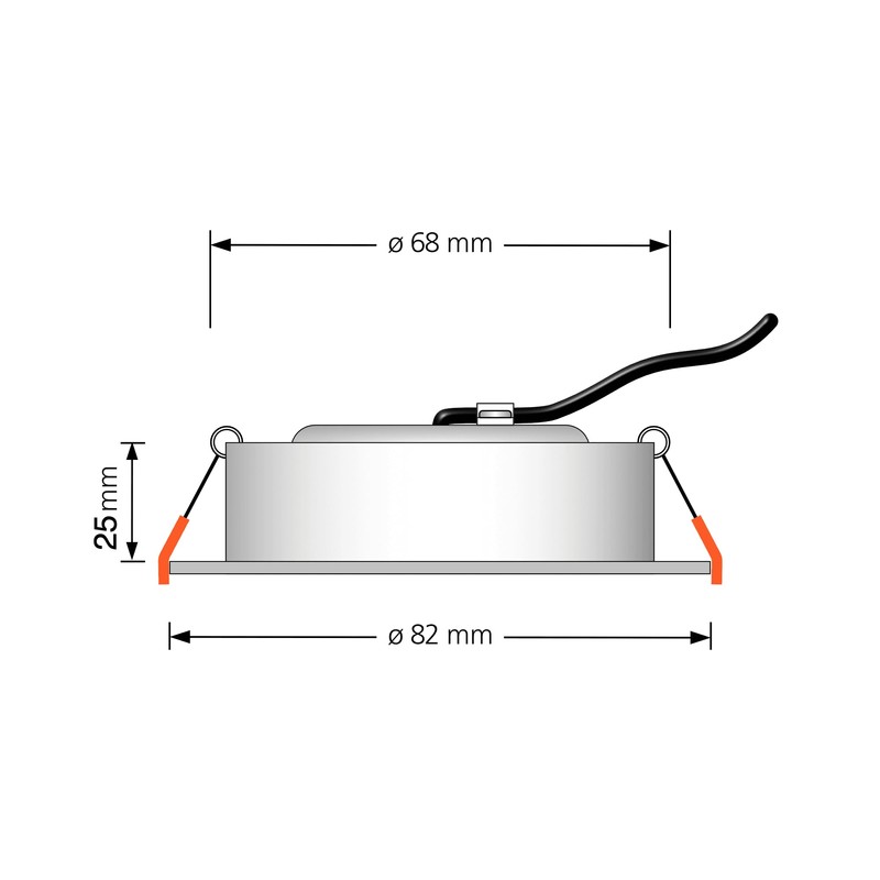 - Technical details: light bulb: LED module, 25 mm installation depth (hole cut-out diameter 68-78 mm), voltage: AC 230 V, power: 7 W, protection class: IP20, box contents: 1x aluminium mounting frame, 1x ultra flat LED module