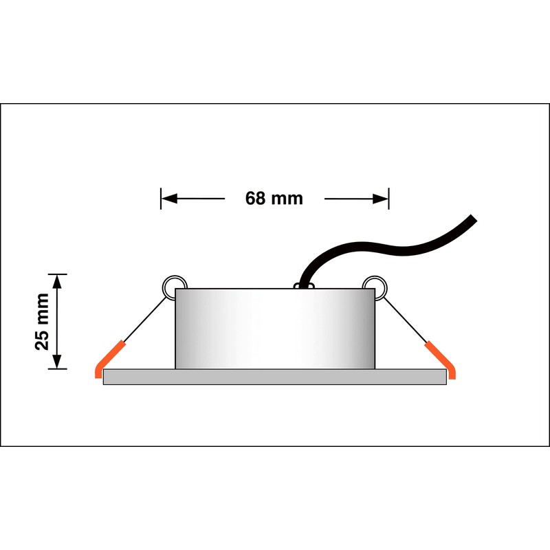 - LED recessed spotlight: the ceiling spotlights have only 25 mm installation depth, ideal for low ceiling heights. Perfect for elegant, modern LED recessed ceiling lights in living rooms and business premises