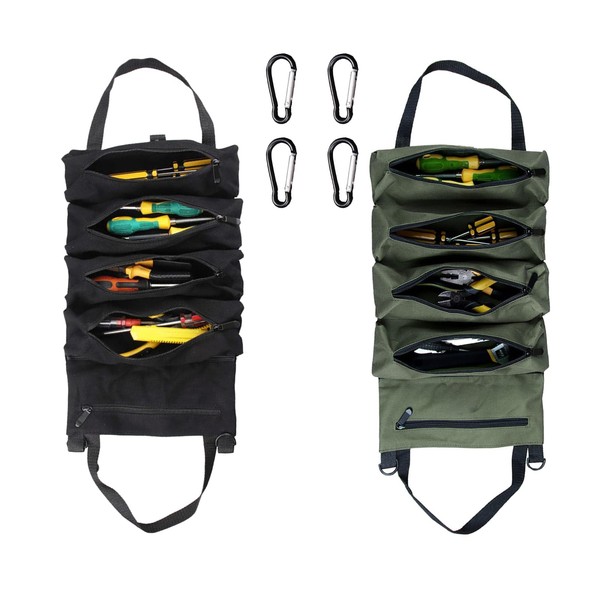 LUYEJKO 2 PCS Roll up Tool Bag,Tool Roll Bags,Small Tool Roll,Portable Tool Bag for Daily Travel (Black and Green)