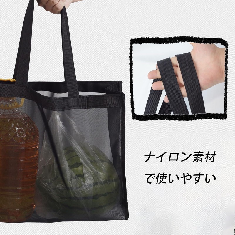 - 【優れた通気性と蒸れにくさ】メッシュ素材の独自の中空構造により、通気性を確保。新鮮な果物や野菜、濡れた水着やスポーツ用品などを収納しても、湿気を素早く発散させ、臭いや細菌の繁殖を防ぎます。特に夏のショッピングやアウトドアに最適です。