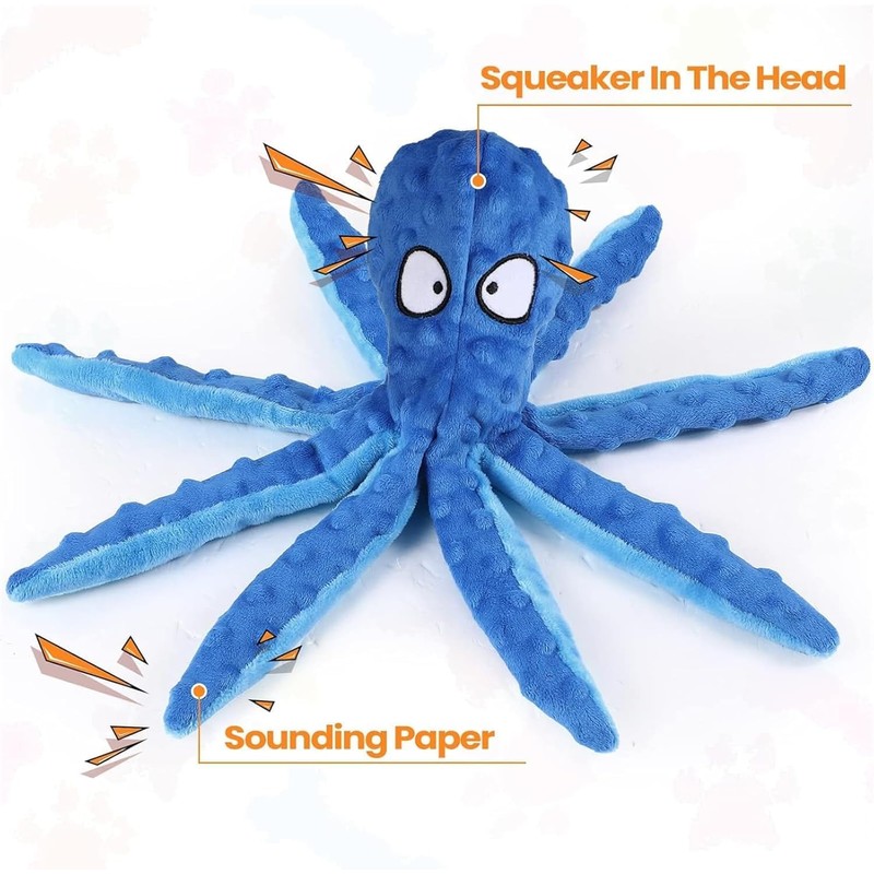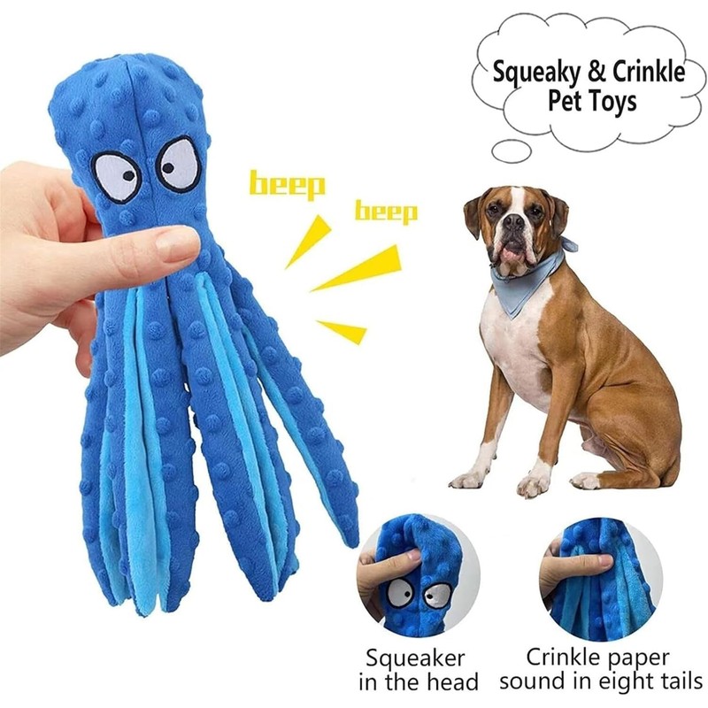 - 【Whiskerspot Octopus Dog Toy】: Features a squeaker in the head and crinkle paper in each arm to spark your dog’s curiosity and instinct. Keeps your pet mentally stimulated, reducing boredom and anxiety during solo or interactive play.