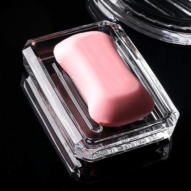 luzen 1PC Rectangle Glass Soap Dish Bar Soap Holder Soap Saver Tray Soap Case Soap Box Holder for Shower Bathroom Kitchen, Clear