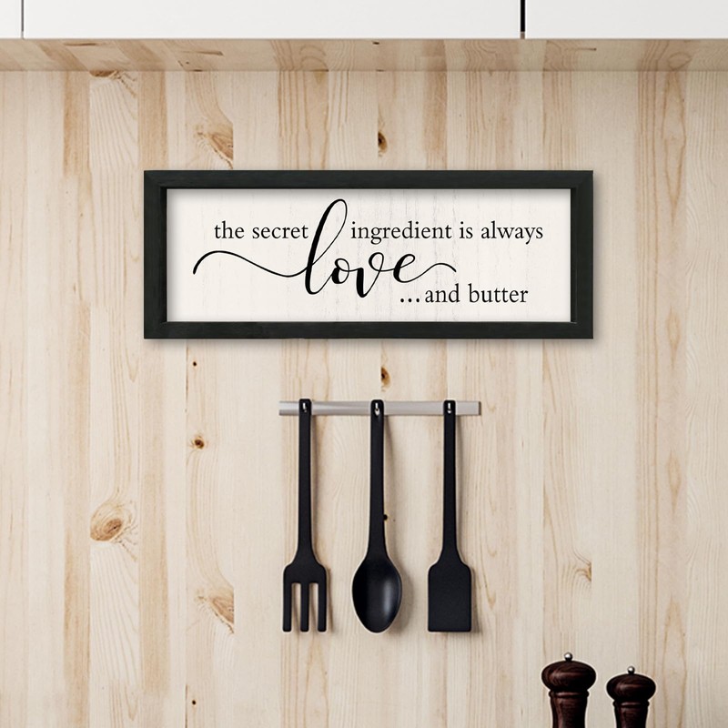 LuZhiQiang The Secret Ingredient Is Always Love and Butter Wall Decor 16"×6" Kitchen Dining Room Sign Wooden Framed Wall Hanging Art (Black)
