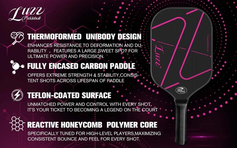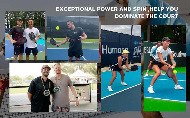 - CARBON FRICTION TEFLON SURFACE PICKLE BALL PADDLE:Unmatched power and control with every shot,it's your ticket to becoming a legend on the court.Utilizesan advanced Carbon-Flex5 material,haessing raw power with maximum spin
