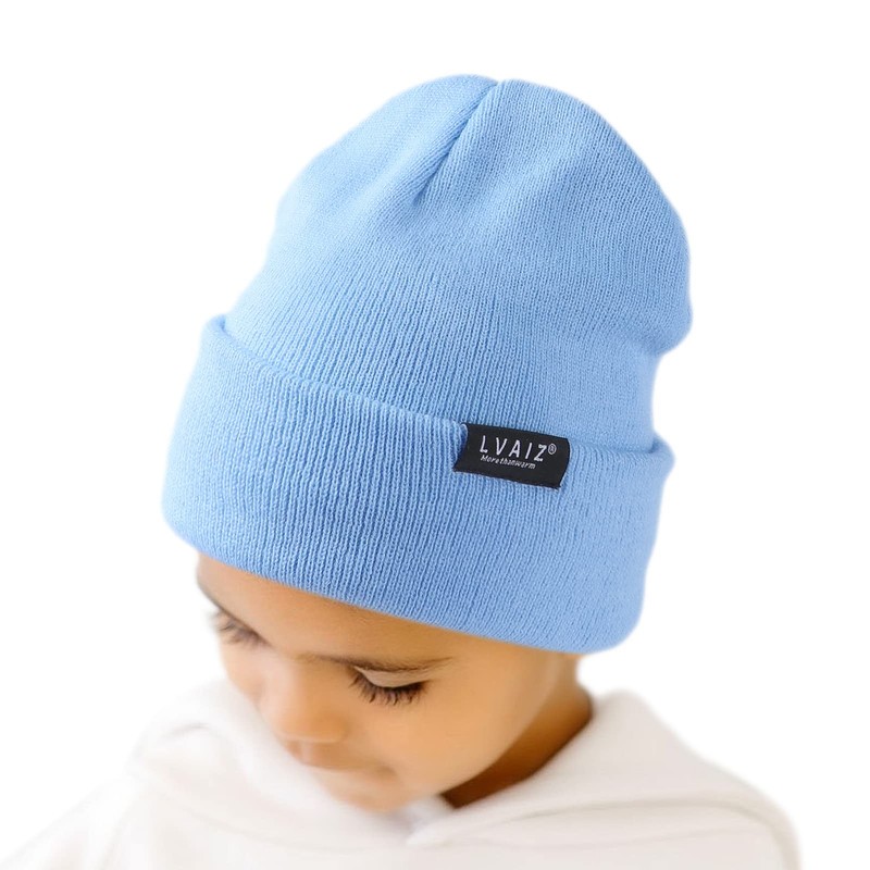 Lvaiz Kids Winter Satin Lined Beanie Hats Toddler Warm Cuffed Hat with Silky Lining Children Knitted Watch Hat Blue