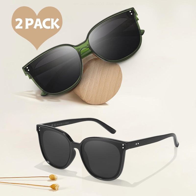 LVIOE 2 Pack Oversized Polarized Sunglasses for Women Trendy Large Cat Eye UV Protection Shade LS1627s