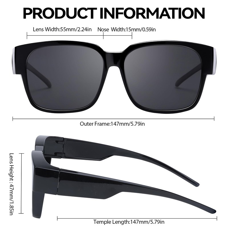 - Fit over wide lens – Distinctive design, with an excessive, surrounding attachment and widened temple design, these sunglasses can absorb your standard eye preparations without difficulty. In their large square shape, they are both fashionable and retro and can also be used as stylish accessories.