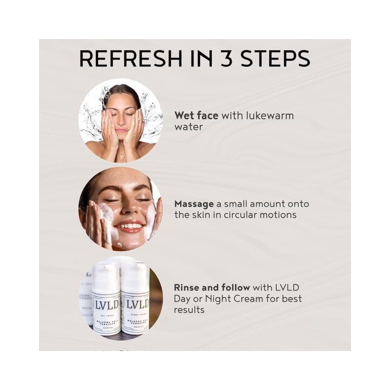 - Perfect for Morning and Night: Use this hydrating cleanser as the first step in your skincare routine. Pair it with LVLD Day or Night Cream to lock in moisture and achieve a luminous, glowing complexion
