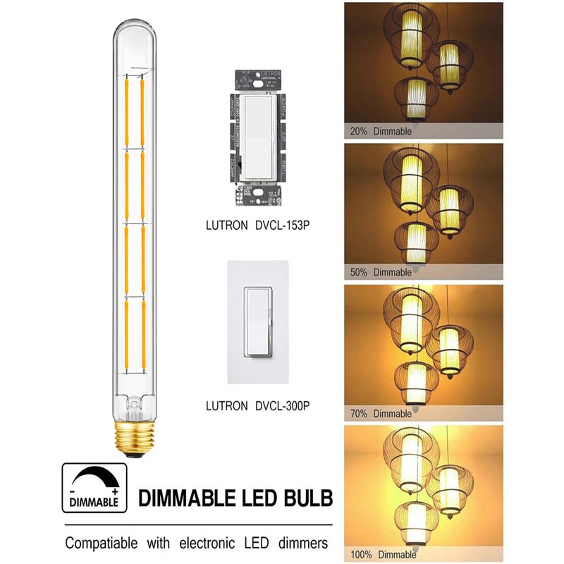 LVYE E26 Led Tubular Bulb,E26 Dimmable Led Bulbs 10W,100 Watt Equivalent,2700K Warm White,11.8inches Long Edison Bulbs,T10 Tube Bulb,6Pack.