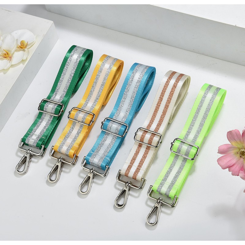 - [High Quality Materials]Crossbody purse strap made from high quality fabric sturdy metal buckles. No need to worry about being scratched or snags,the two long silver or gold metallic stripes in the middle are very shiny.