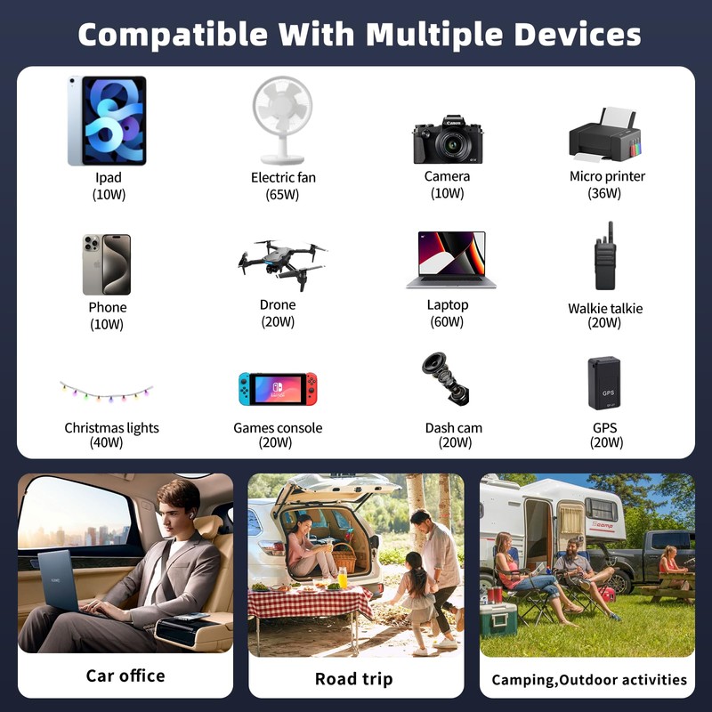 • ULTRA COMPACT AND LIGHTWEIGHT: Credit Card-sized design ideal for use on vacations, work trips, and camping. 24 inch cigarette lighter plug makes the power inverter can be plugged into almost any vehicle.