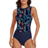 LVZIJUN Women One Piece Rash Guard High Neck Sleeveless Zipper UPF 50 Surfing Swimsuit Blue Flower S