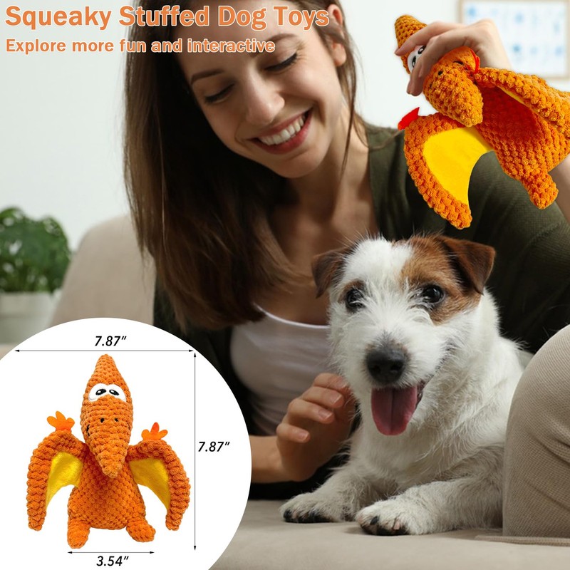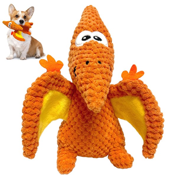 LWBMG Squeaky Dog Toys Plush Dog Toy with Crinkle Paper Dinosaur Dog Toy Stuffed Animals Chew Toy Plush Squeaky Dog Birthday Toys for Small Medium Large Dogs Orange