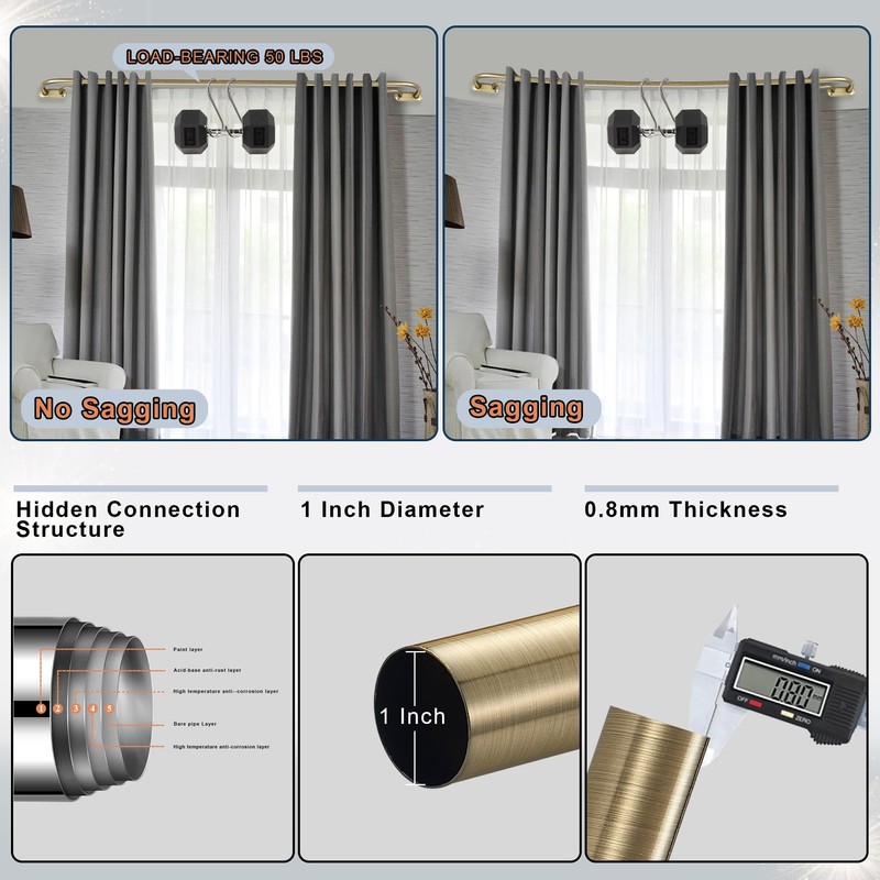 - Anti-Rust Metal Material - The oval double-deck finials and center brackets of double wrap around curtain rod are made from high quality zinc alloy and aluminum which are never rustand can be directly contact with the wall without leaving rust marks like iron.