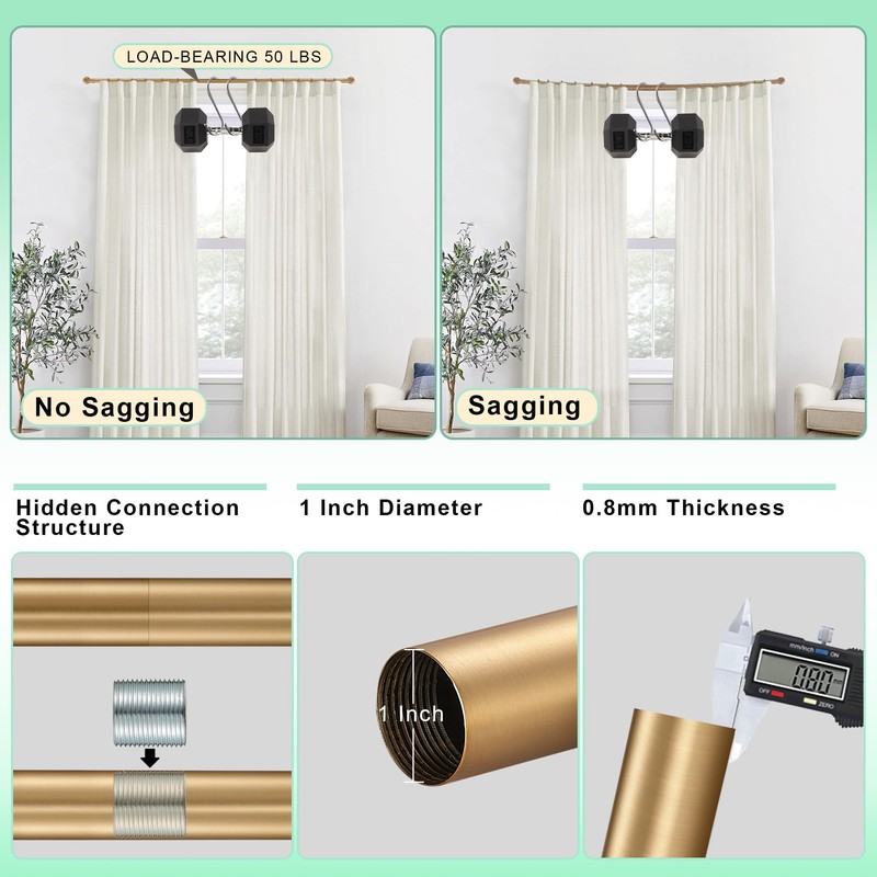 Lwiiom Warm Gold Curtain Rod for Windows 28 to 150 Inch, Internal Splicing 1 ...