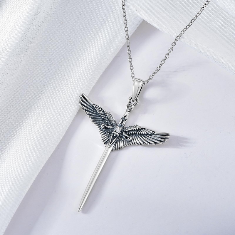 - 💎【Diamond Angel Wing Sword Necklace】The Diamond Angel Wing Sword Necklace effortlessly blends celestial symbolism with sophistication. Enhanced with exquisite diamonds, the intricately crafted angel wings and sword symbolize protection, courage, and spiritual guidance. This necklace seamlessly complements both contemporary and classic styles, making it a symbol of empowerment and grace. A timeless accessory, it serves as a personal talisman and a captivating fashion statement.💎