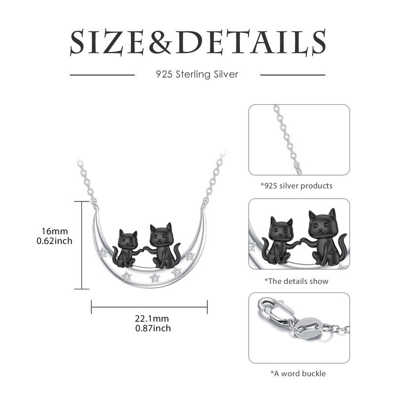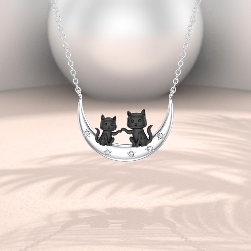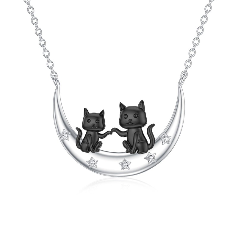LWXIE Diamond Black Cat Necklace for Women 925 Sterling Silver Two Cat on Moon Pendant Necklace Cute Animal Jewelry Gifts for Daughter Mom Women Wife Friend