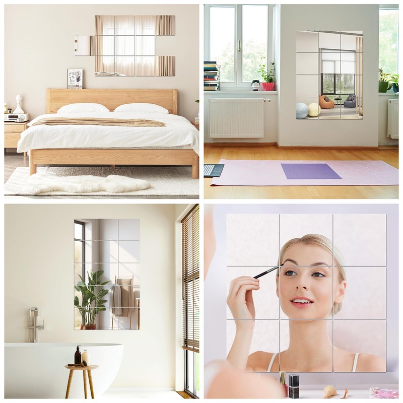 - Application Scenario: This frameless self adhesive mirror tiles easy to use, suitable for all kinds of Spaces, such as your living room, bedroom, dressing room, bathroom, gym, office, etc., and also suitable for all kinds of DIY, whether square or other shapes, you can freely combine according to your personal preference
