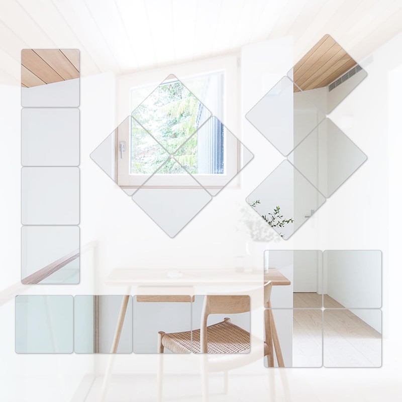 - Easy to Install: This acrylic squares mirrors for wall has double-sided foam tape on the back, which can be easily installed on a smooth surface by removing the tape backing paper. After installation, the protective film on the surface of the mirror can be removed, and the reflection of the mirror can be displayed