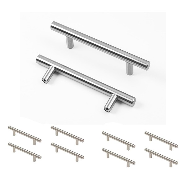 LxcshLjx 10Pcs 5.9 in Brushed Nickel Cabinet Pulls, 3.8 in Hole Center Kitchen Cabinet Handles, Cupboard Handles, Stainless Steel T Bar Cabinet Hardware, Drawer Dresser Pulls, Door Knobs for Bathroom