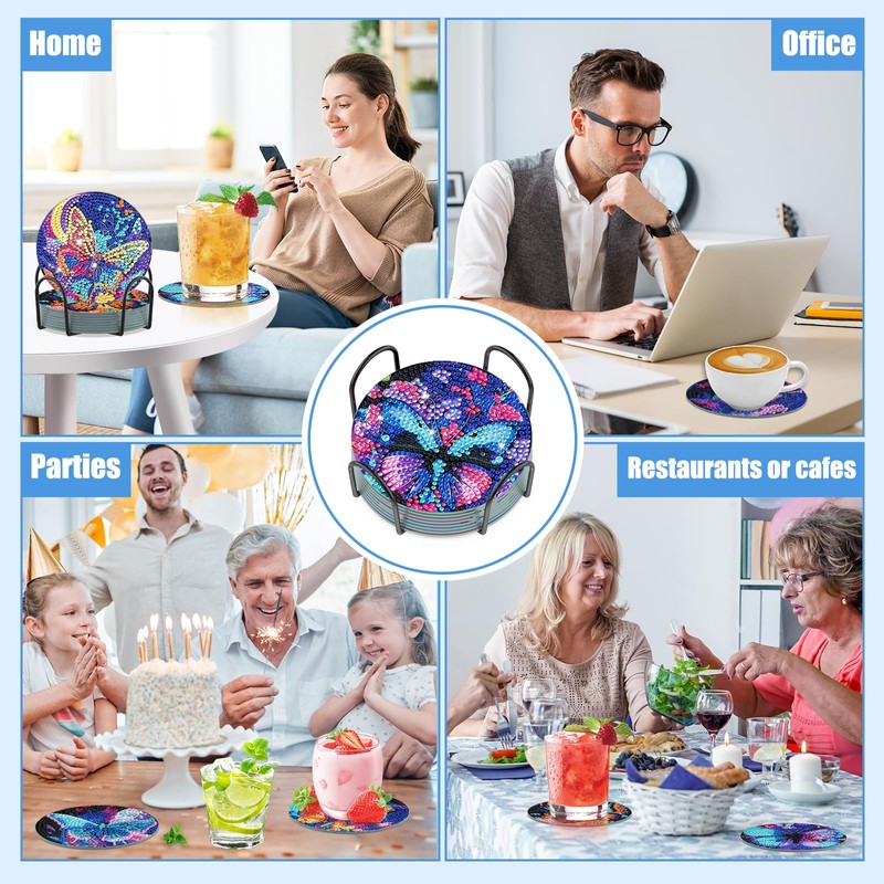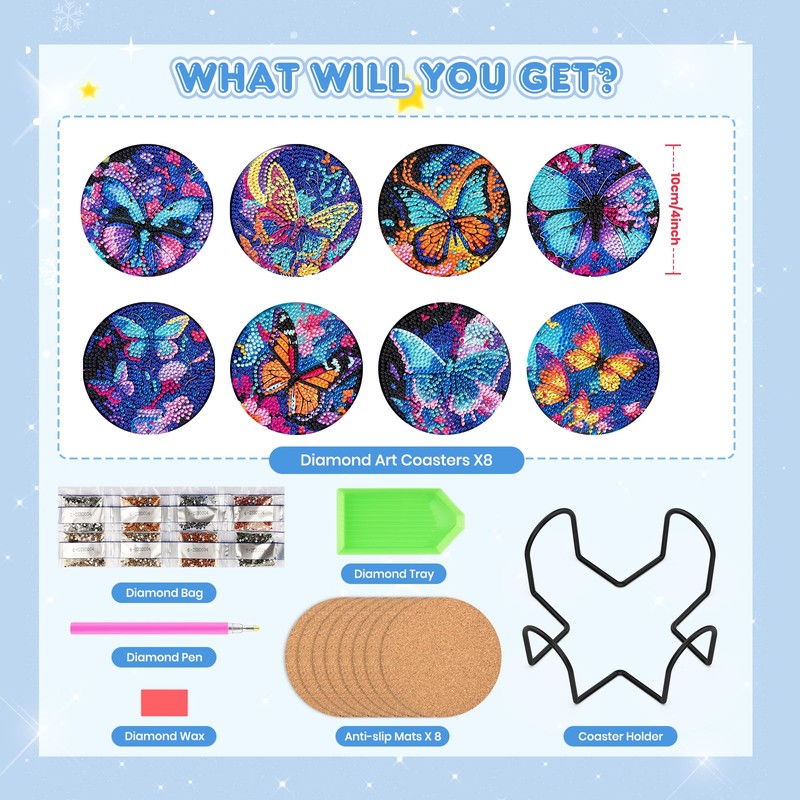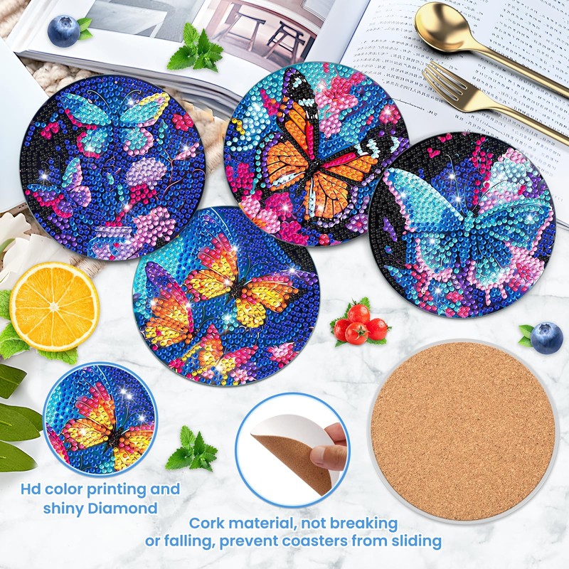 Lxmsja 8 STK Diamond Painting Untersetzer mit Halter, Diamond Painting Schmetterling, Diamant Painting Bilder Erwachsene Kinder, Diamant Tassenuntersetzer mit Kork, Basteln Erwachsene Frauen