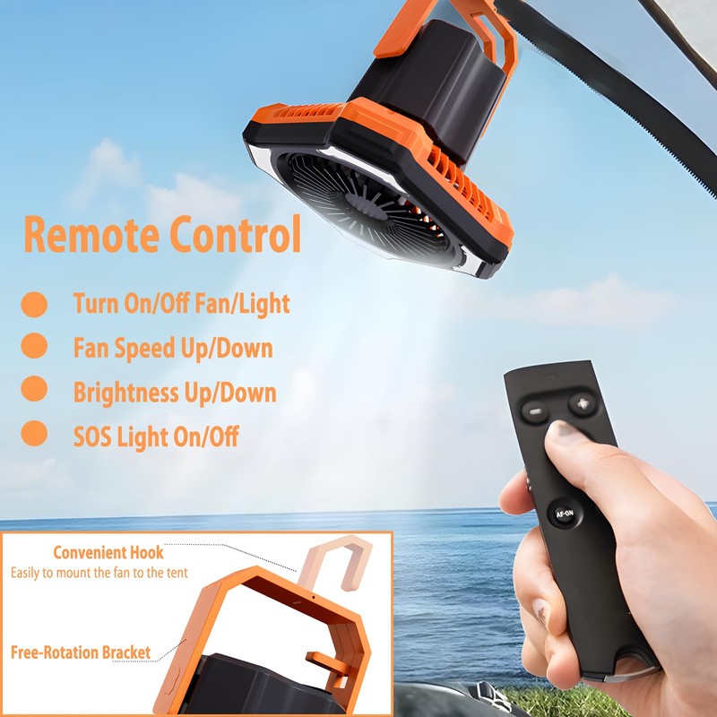 LXSINO Camping Fan with LED Lantern, 3 Level Fan Speed 10000mAh Rechargeable Battery Powered Fan with Remote for Travel, Hiking, Fishing, Picnic