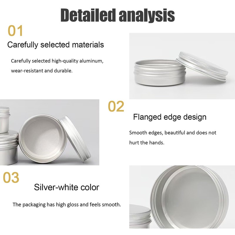 - Lid design: these aluminium tins close tightly and are easy to use. They are suitable for items that need to be insulated from the air, earrings, necklaces and rings, and ensure proper storage of household items.
