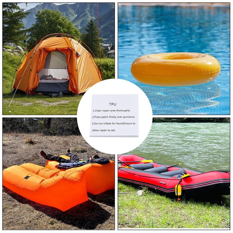 - Wide Applications: Suitable for repairing small slits or fix a leak on swimming pool, bounce house, inflatable boat, inflatable raft, air mattresses, air bed, above ground pool, pool tube, pool float, inflatable ride-ons, inflatable sofa, waterproof bag, balloons, inflatable toys, and other inflatables, and can also be used to repair tents, canvas, rainwear, Umbrella and vinyl furniture. bring you much convenience.