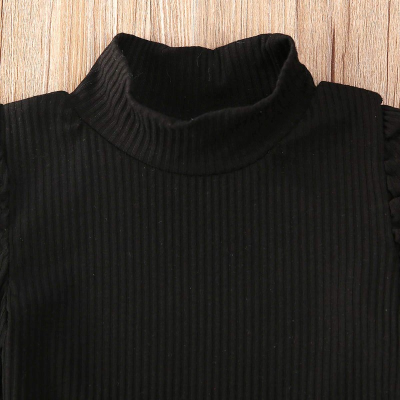 LXXIASHI Toddler Baby Girls Long Sleeve Knitted Turtleneck Pullovers + A-Line Leather Skirt Outfit (Black Turtleneck - Brown Leather, 3T / 4T)