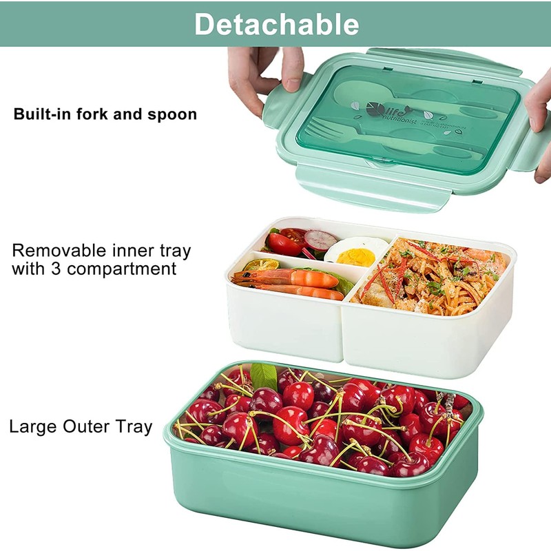 • PERFECT BENTO LUNCH BOXES FOR YOUR HEALTHY MEALS: Our reusable bento boxes for adults and kids are easy to use, wash, and store. With our bento lunch box, you can watch what you eat when you're not at home while keeping an eye on your wallet. With 3 different compartments, you can take a complete meal just in one container. The lunch containers with portion control help you keep your diet plan and lose weight.;PREMIUM QUALITY! Made from premium food grade materials, this is the best adults bento boxes container for packing healthy food to go. The meal storage containers can be easily opened using the convenient flaps of the lids.Note also that thanks to their compartments, space-saving design, these bento lunch boxes fit into one another for easy and convenient storage!;PORTABLE, LIGHTWEIGHT, EASY TO CARRY: The dimension of 7.8 x 5.1 x 2.7 inches makes it portable and easy to carry. The perfect design of 1100 ml vs 37 OZ makes the bento lunch box for kids large capacity and light weight.;THREE COMPARTMENTS:With three compartments, you can bring different kinds of food for your lunch just in one container. The lunch containers with portion control help you keep your diet plan and lose weight.;3 COMPARTMENTS: With 3 compartments, you can bring different kinds of food to your lunch with one container. Lunch containers with portion control help you maintain your diet plan and lose weight;Item shape: Rectangular;;;;