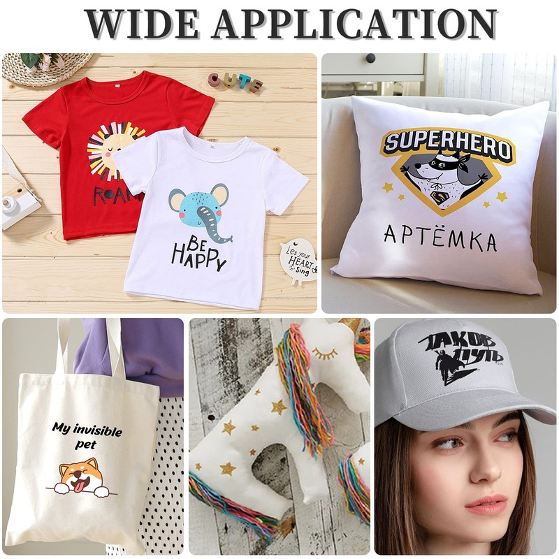• GREAT ADHESION - Our htv vinyl can withstand repeated wash and friction. Good stickness and adheres to fabrics well, does not peel off or fade easily, can be applied to clothes, bags, shoes, socks, hats, aprons, handkerchiefs and other textiles surface. *NOTE: Please wait 24 hours before the first wash.