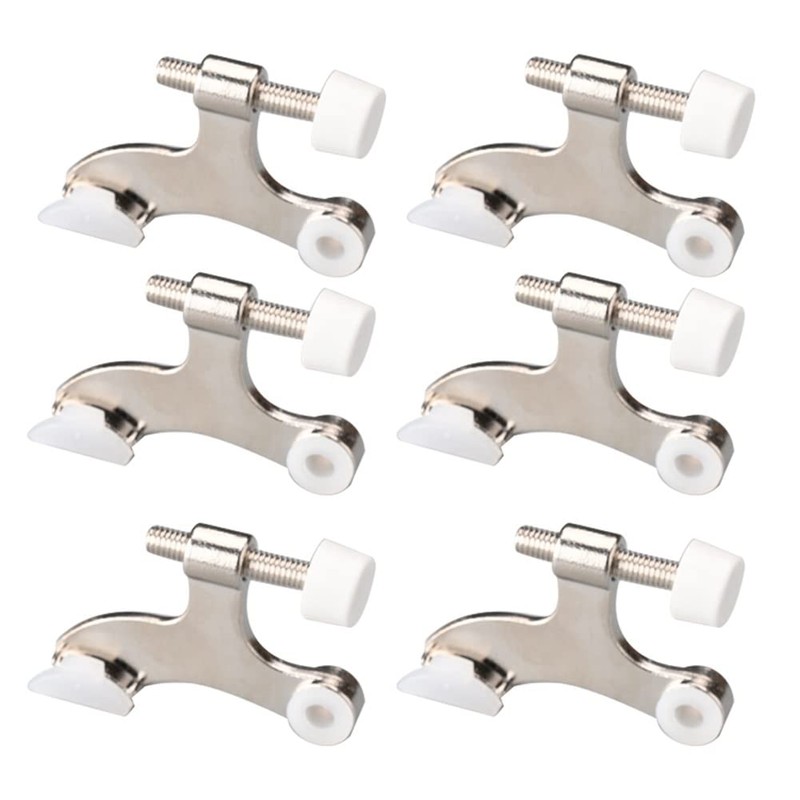 Lyaciomn 6Pcs Hinge Pin Nickel Color Door Stopper Adjustable Heavy Duty Hinge with Rubber Bumper to Reduce Damage Wall Dents