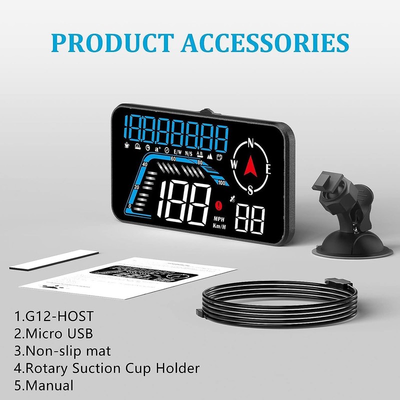 Lyaciomn G12 HUD -Up Display GPS Car Display Speeding Alarm Driving Speed Universal Black Easy Install