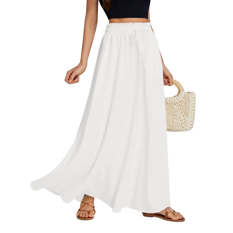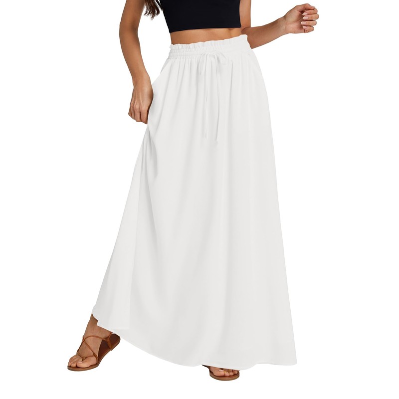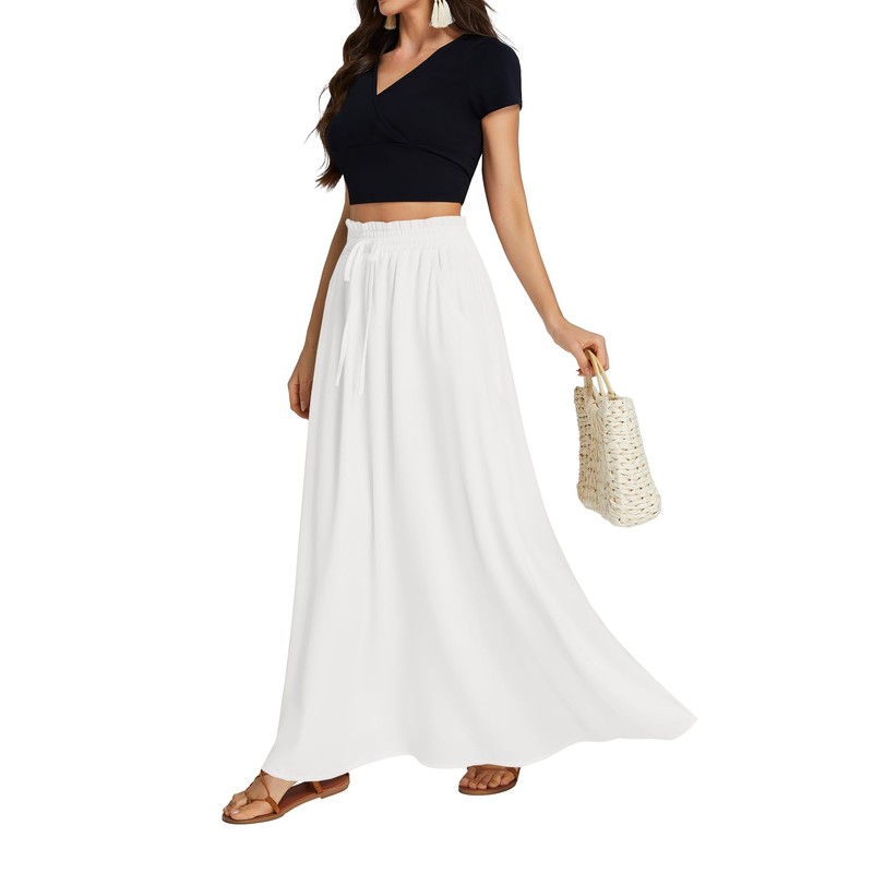 - Shirred, smocked, frill, drawstring, pleated, high waist, breathable and soft fabric, maxi skirt for women and girls.