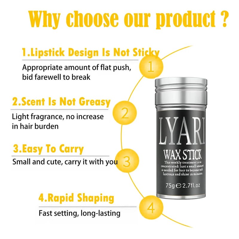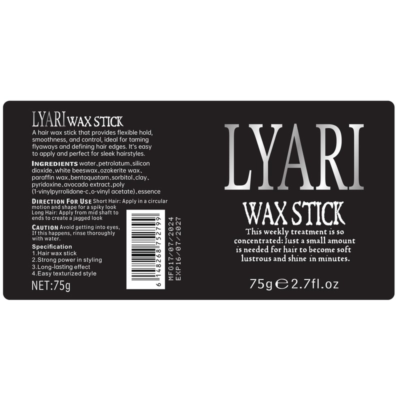 LYARI Hair Wax Stick Hair Styling Stick for Flexible Hold, Smoothness and Control, 2.7 fl oz