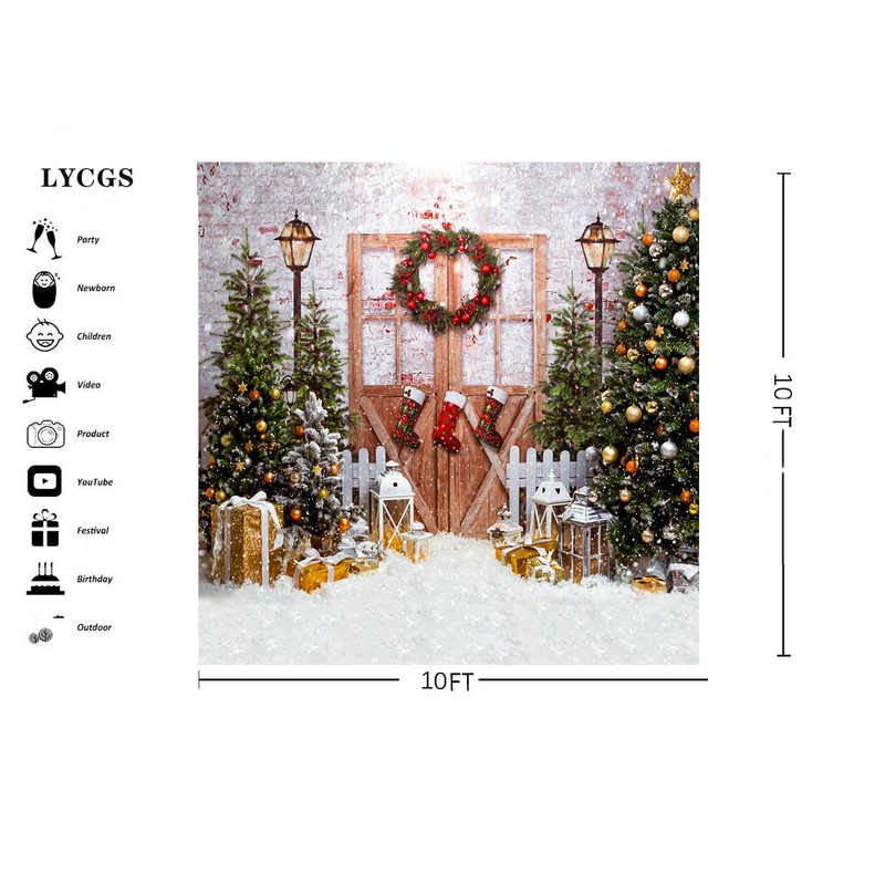LYCGS 10X10ft Christmas Backdrop Christmas Backdrops for Photography Christmas Trees Snow Xmas Gifts Backgrounds Xmas Party Decorations Backdrop X-164