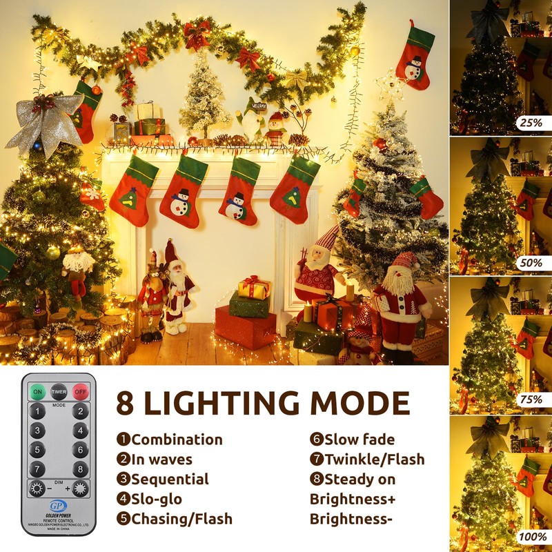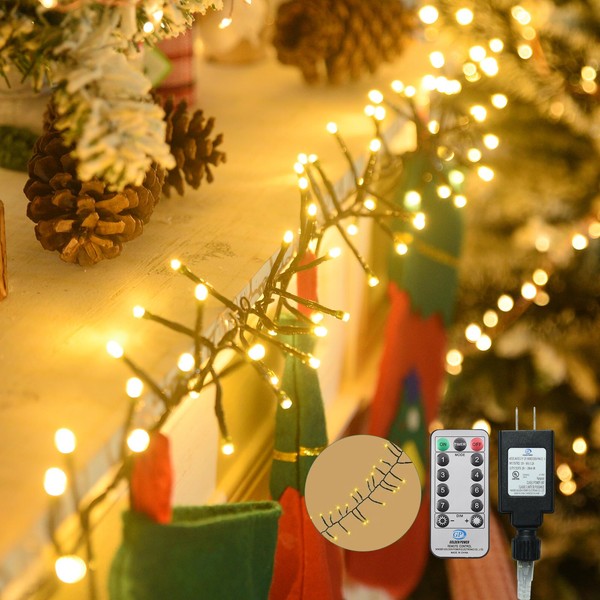 - 【FAIRY LIGHTS WITH TIMER】Our Christmas tree lights feature timer settings, 4 brightness levels (100%, 75%, 50%, 25%), and a memory function. With the included remote control, you can easily adjust the settings to your preference. Moreover, the memory function ensures that the cluster lights remember your previous settings, so you don't have to readjust them each time you turn them on.