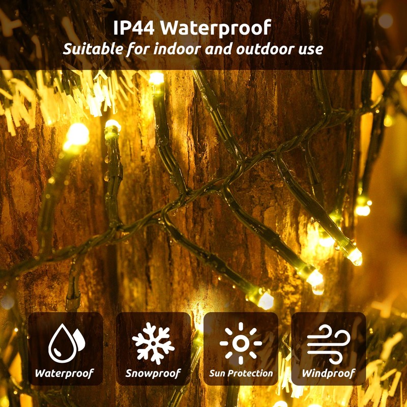 - 【WATERPROOF FAIRY LIGHTS】The Christmas fairy lights are designed with an IP44 waterproof rating, making them suitable for both indoor and outdoor use. They are the perfect choice for adding a touch of festive charm to your Christmas decorations. Perfect for a foyer, bedroom, window, living room, camping, room, banister, balcony, deck, patio, yard, garden fence, oil painting, gallery, bistro, bar, restaurant, birthday, party, wedding anniversary, celebrations, proms, gathering.