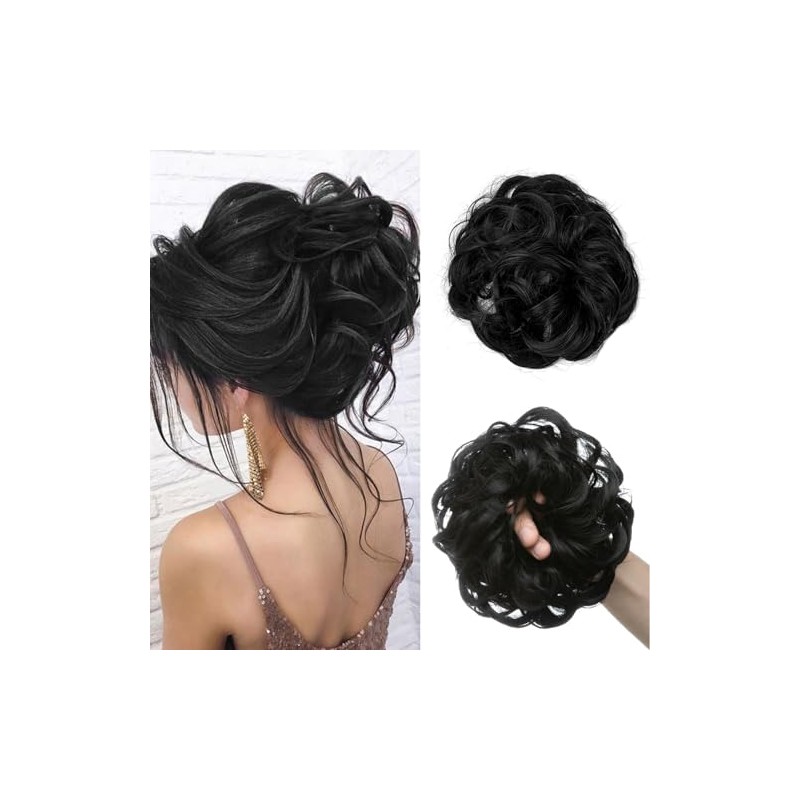 Lydell Messy Scrunchie Bun Voluminous Wavy Hairpiece Heat-resistant Synthetic Fiber 1B Black