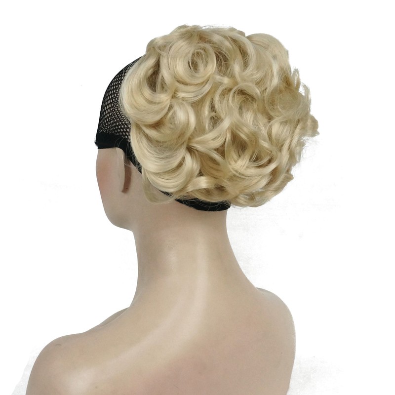 Lydell Short Messy Curly Dish Hair Bun Extension Stretch hair Combs Clip in Ponytail Extension (613 Blonde)