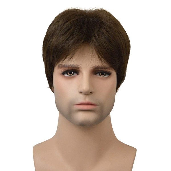Lydell Short Straight Synthetic Wigs with Bangs for Men Brown