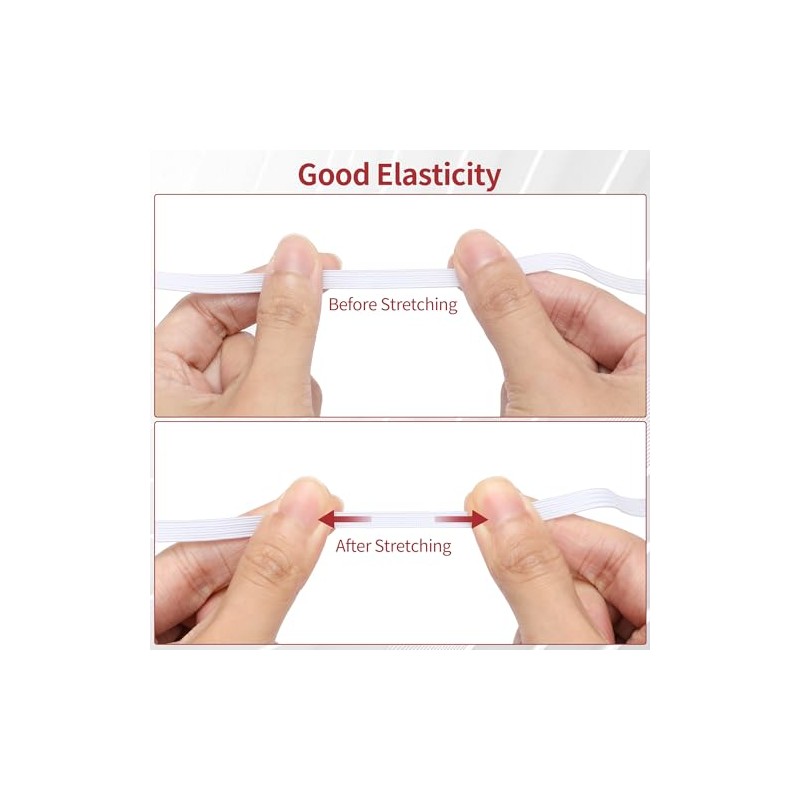 - GOOD ELASTICITY - Easy to work with, stretch to 80% to 100%.Decent stretch, easy to restore the original length without deformation, and will not loosen over time either. It is 1/4 inch Wide 10 yard , which can meet your daily need for sewing DIY.