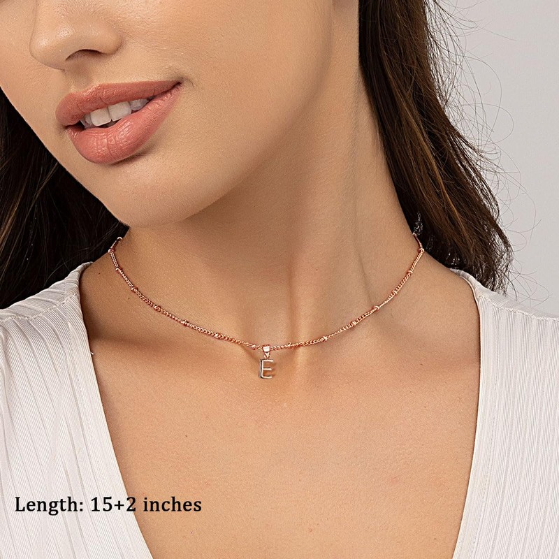 - ♥Adjustable Necklace♥ 2 necklaces in one order. The first tier rose gold letter E necklace is about 15"+2" (38cm+5cm) extender, the second tier rose gold heart pendant necklace is about 17"+2" (43cm+5cm) extender. Simple and trendy. Each chain necklace has a individual lobster clasp, easy to wear, suitable for most women.