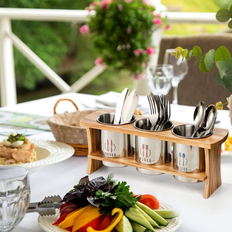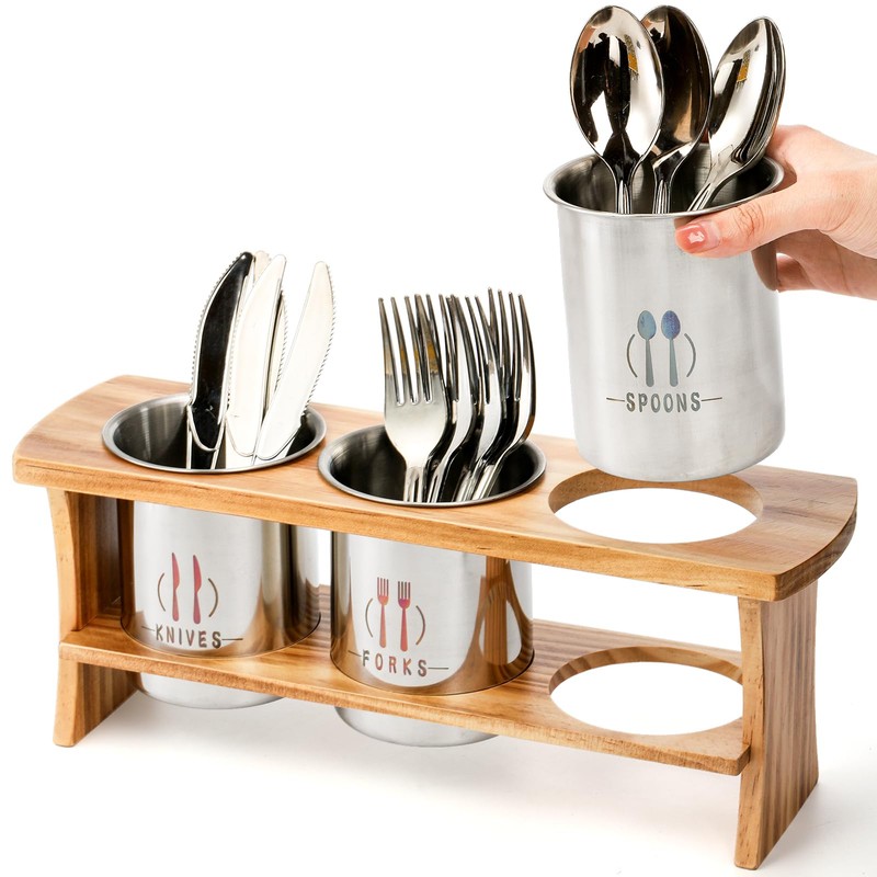 Silverware Holder Utensil Organizer with Bamboo Stand Farmhouse Kitchen Cutlery Flatware Holder Organizer for Spoons Knives Forks for Kitchen and Restaurant
