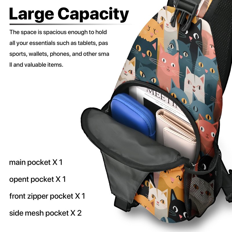 LYEMVHE Cat Sling Bag travel Crossbody Backpack Casual Daypack for Women with Strap Lightweight Outdoor Hiking Climbing Runners