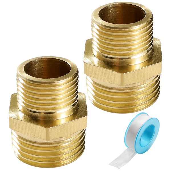 Lyeteung 2 pieces G1/2 male to G3/8 male, brass hex nipple male thread, hexagonal nipple, with thread sealing tape, for pipe connection