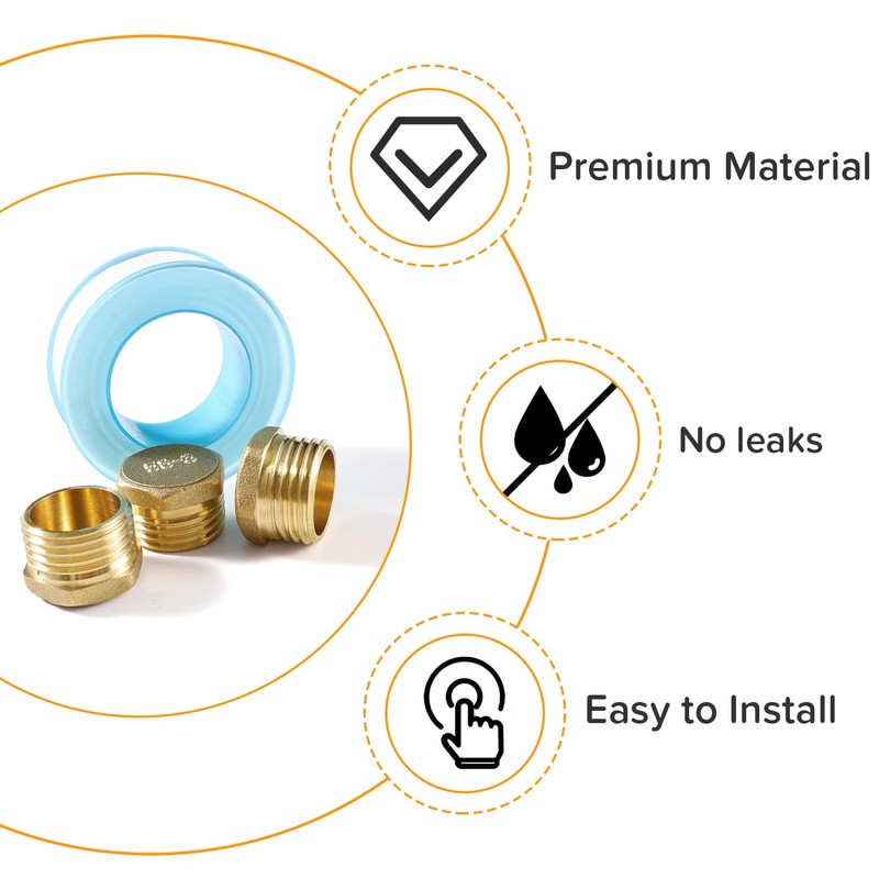 - Package includes: 3 PCS G1/2 Brass Blanking Cap, 1 PC 10m Raw Material Tape.